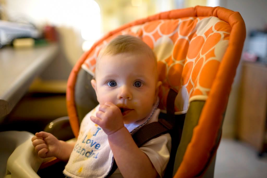 I took some pictures of 6 month old Miles today. He was such a good baby. He was happy during the whole shoot. Miles was eating carrots when I arrived. He has beautiful blue eyes. Miles with his mom. He never stopped smiling! Nicole works at Java Detour. :)
